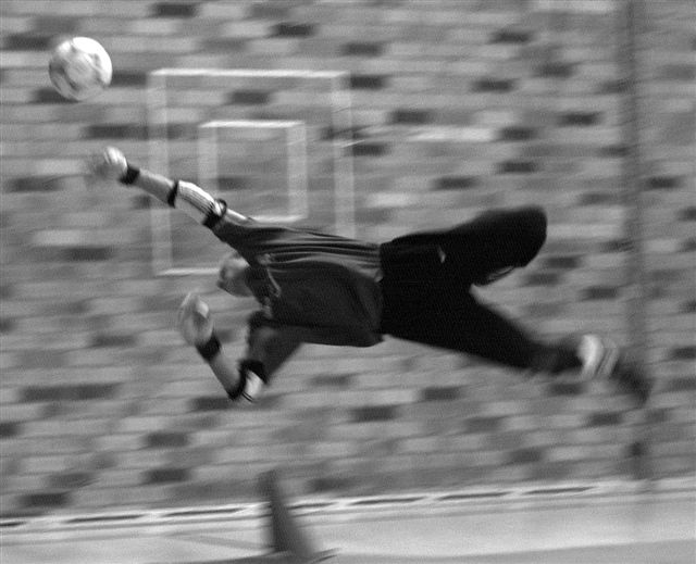 4 KOPF UND KRAGEN riskieren die Torhüter bei ihren waghalsigen Aktionen. Es gibt Leute, die behaupten, nur Verrückte würden sich zwischen die Pfosten stellen.
